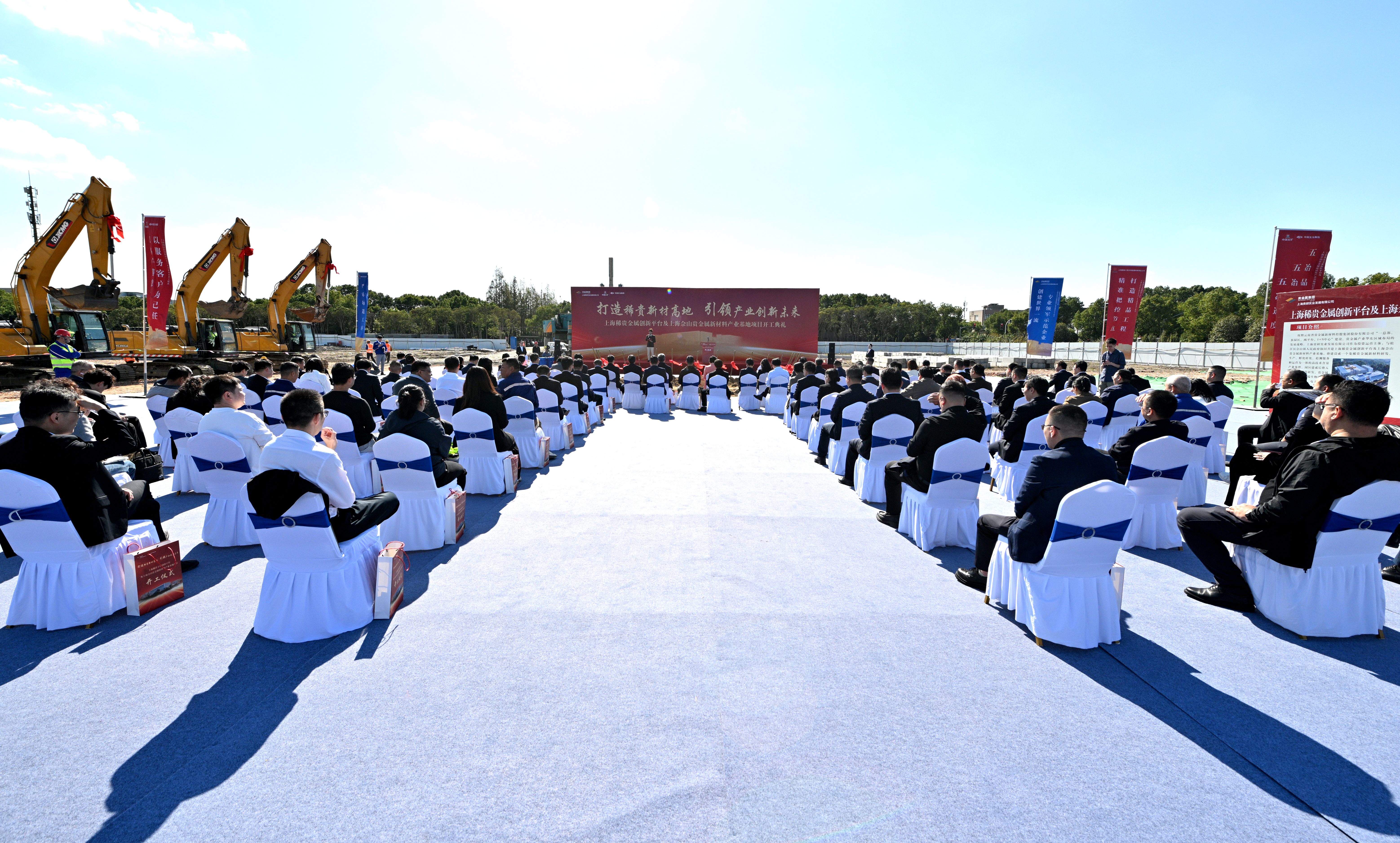 随着云南省贵金属新材料控股集团党委书记、董事长王建强下达开工指令,现场机械轰鸣、彩烟礼炮齐鸣,各方领导嘉宾共同挥铲培土,标志着该项目正式进入建设阶段。